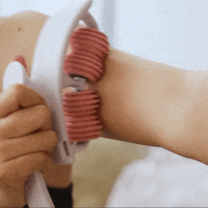 Feel the rollers work deep into the tissue as you move it over your thighs. This motion helps break up fat deposits, boost blood flow, and smooth out dimples over time.