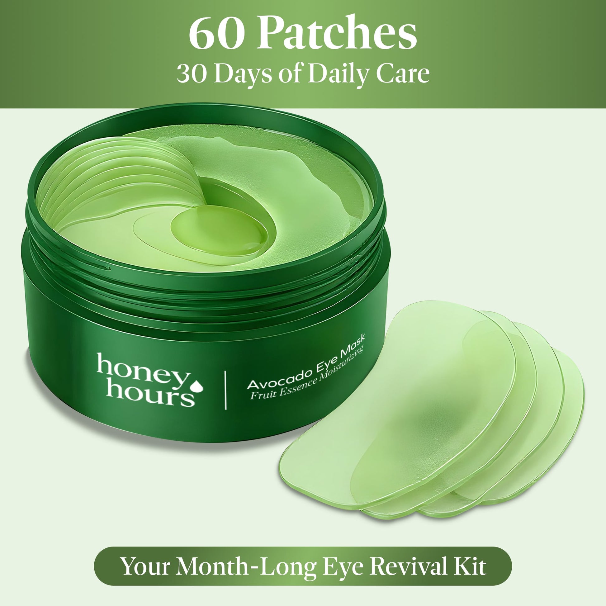 The HoneyHours™ Avocado Collagen Eye Mask was made to tackle everything you hate about tired eyes — puffiness, dark circles, and fine lines. Its cooling hydrogel hugs your skin comfortably while nutrient-rich avocado extract, collagen, and vitamin C get to work — no slipping, no mess, just results you can see.